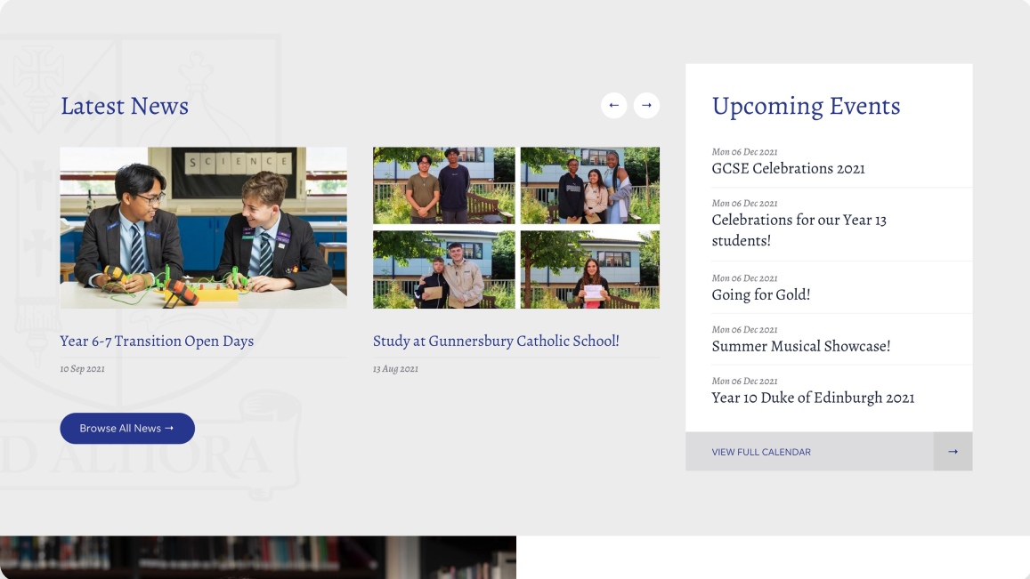 Manage your school or college’s events effortlessly by manually uploading dates or syncing them with an existing calendar. Provide visitors with a personalised experience by categorising events for easy filtering.